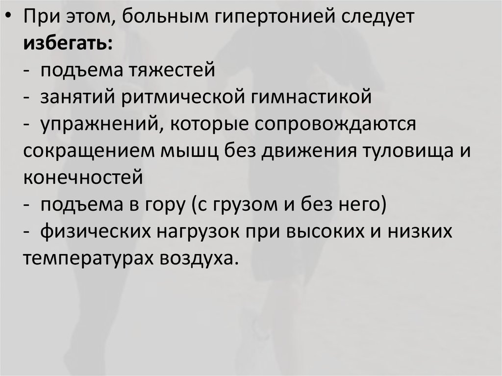 13. Физическая нагрузка при гипертонии должна соответствовать состоянию больного, стадии процесса и форме заболевания.