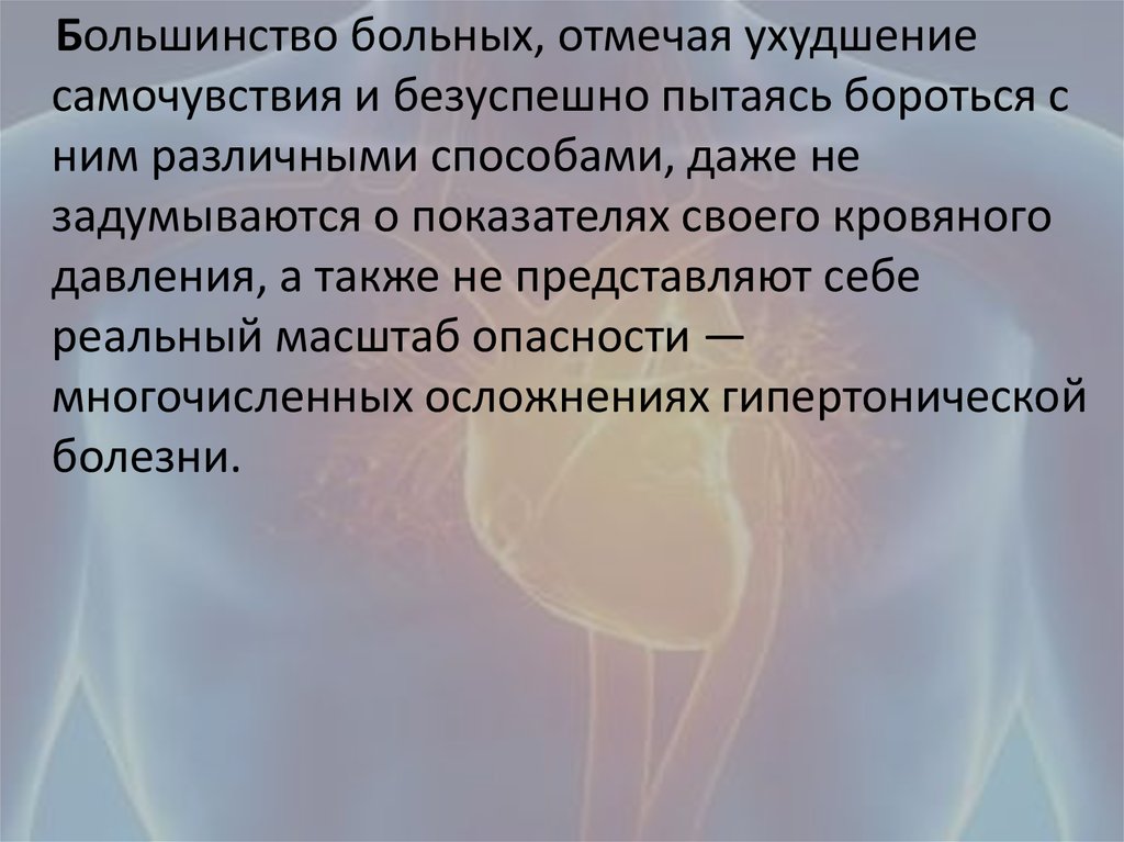 Большинство больных, отмечая ухудшениесамочувствия и безуспешно пытаясь бороться с