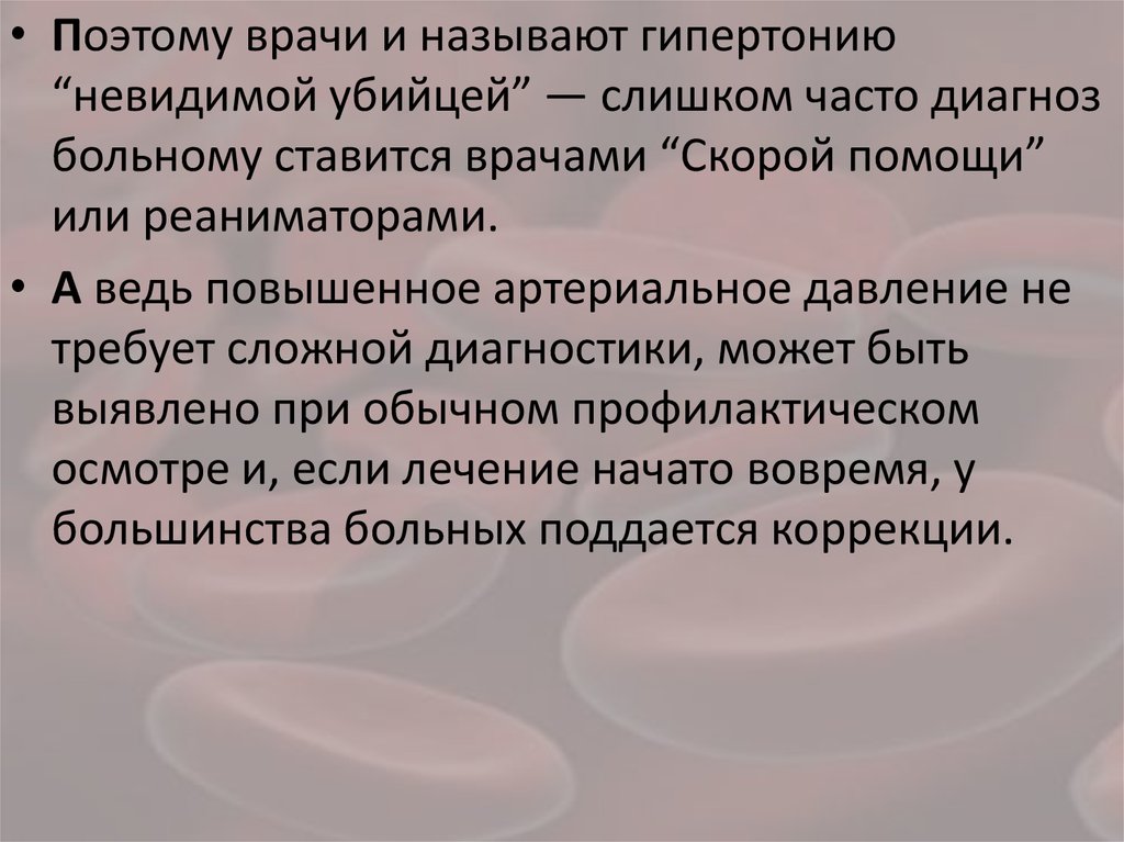 • Поэтому врачи и называют гипертонию“невидимой убийцей” — слишком часто диагноз