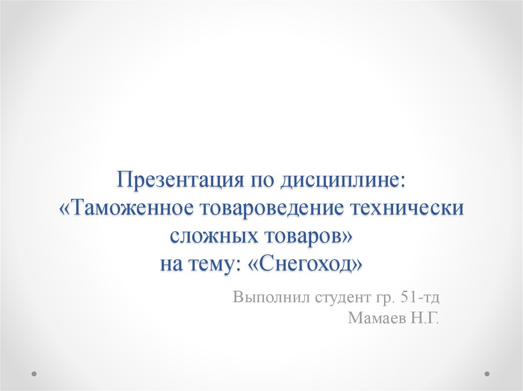1. Презентация по дисциплине: «Таможенное товароведение технически сложных товаров» на тему: «Снегоход»