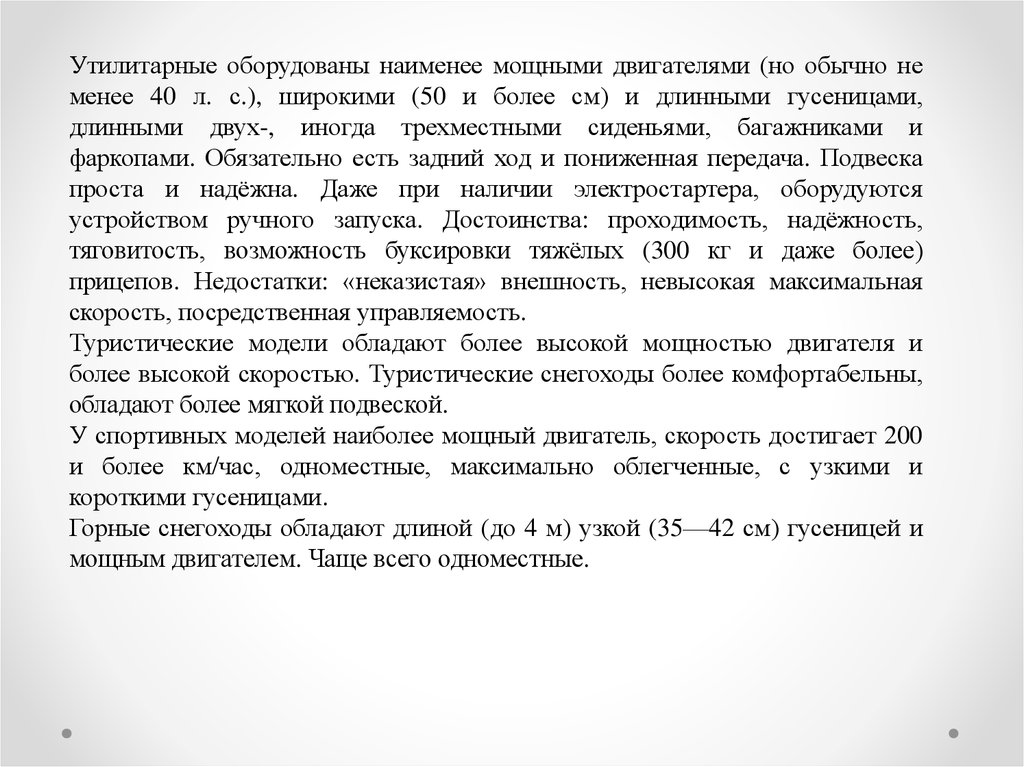 более высокой скоростью. Туристические снегоходы более комфортабельны,