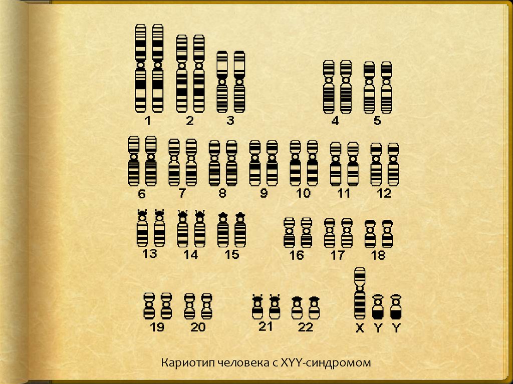 синдрома имеет дополнительную Yхромосому, общий хромосомный набор