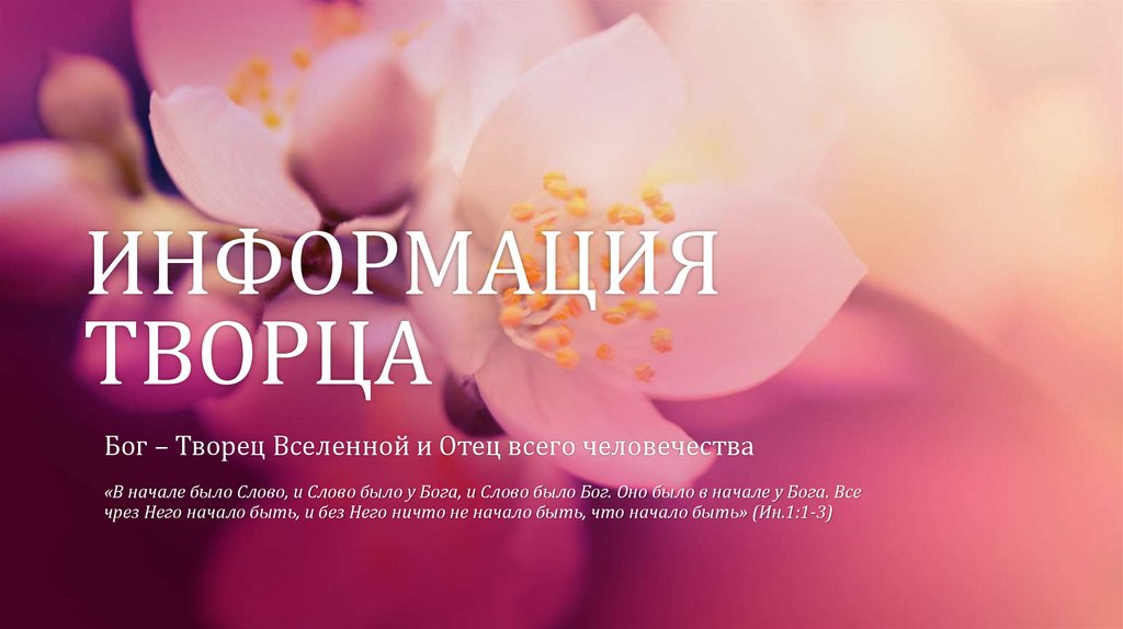 Бог – Творец Вселенной и Отец всего человечества«В начале было Слово, и Слово было у Бога, и Слово было Бог. Оно было в начале у Бога. Все