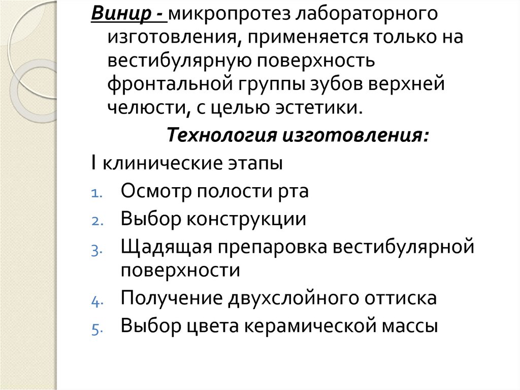 Винир - микропротез лабораторногоизготовления, применяется только на