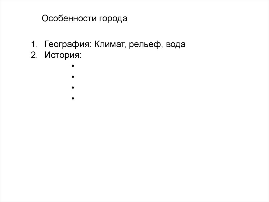 Исторические особенности города1. География: Климат, рельеф, вода