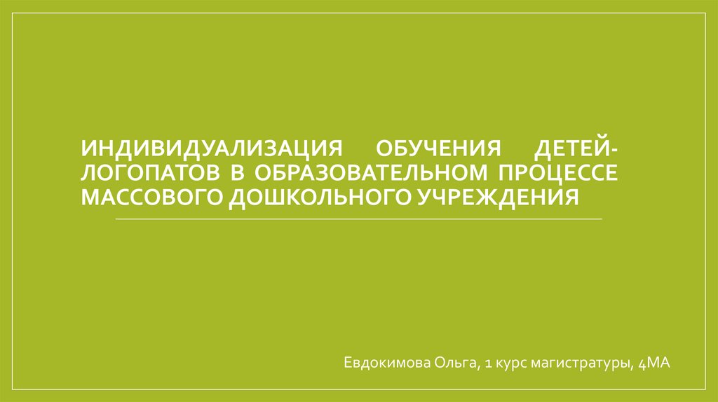 1. ИНДИВИДУАЛИЗАЦИЯ ОБУЧЕНИЯ ДЕТЕЙ-ЛОГОПАТОВ В ОБРАЗОВАТЕЛЬНОМ ПРОЦЕССЕ МАССОВОГО ДОШКОЛЬНОГО УЧРЕЖДЕНИЯ