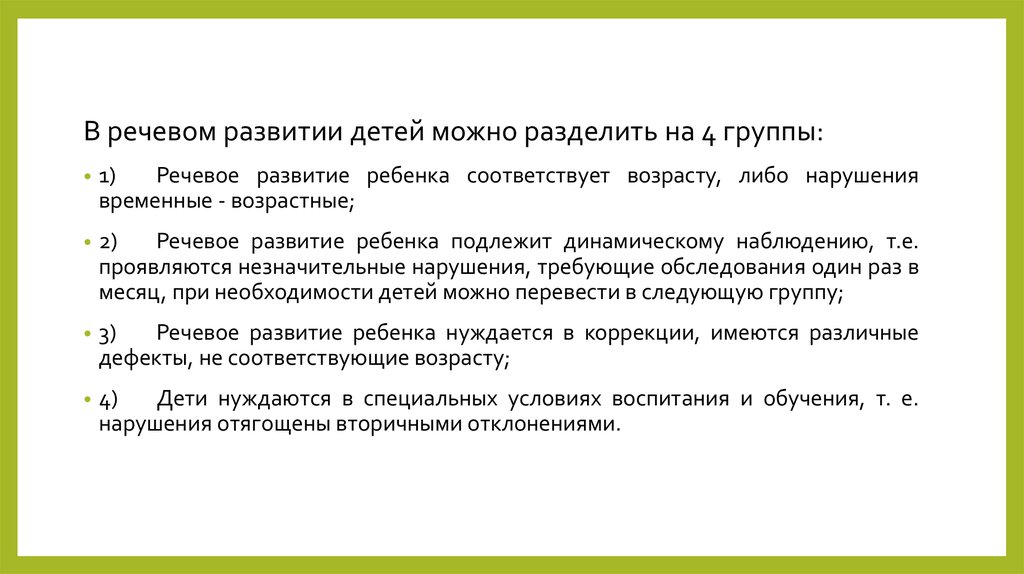 Речевое развитие ребенка подлежит динамическому наблюдению, т.е.