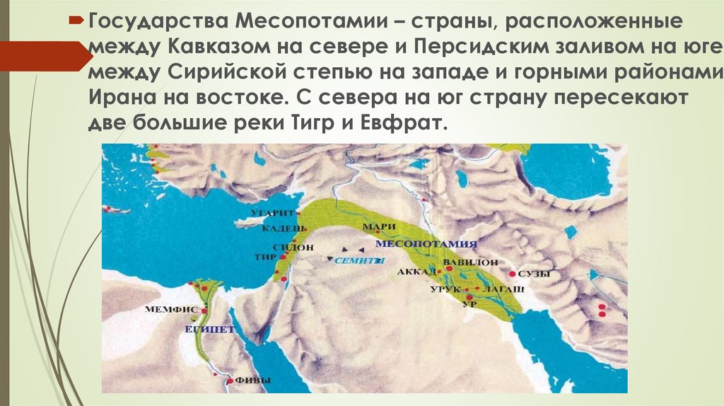 Государства Месопотамии – страны, расположенныемежду Кавказом на севере и Персидским заливом на юге,