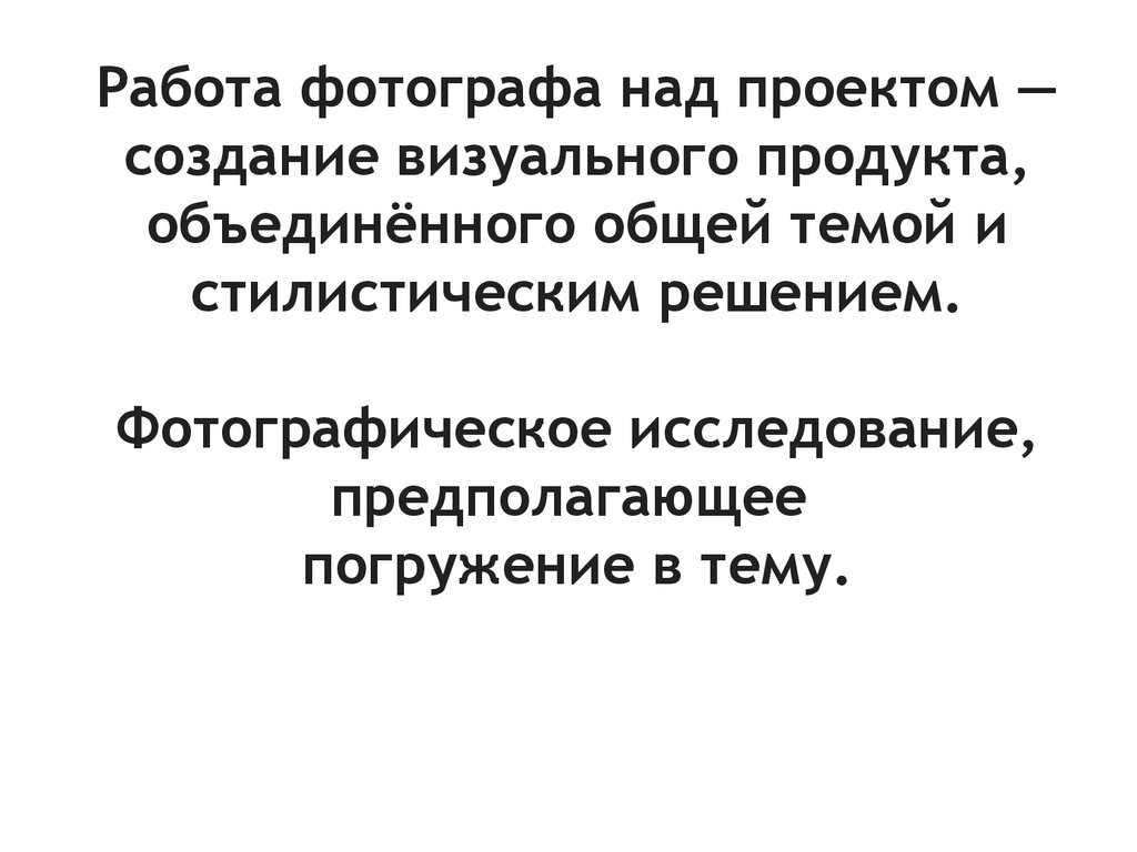 Работа фотографа над проектом - создание визуального продукта, объединённого общей темой и стилистическим решением