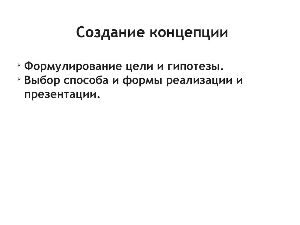 Создание концепцииФормулирование цели и гипотезы.