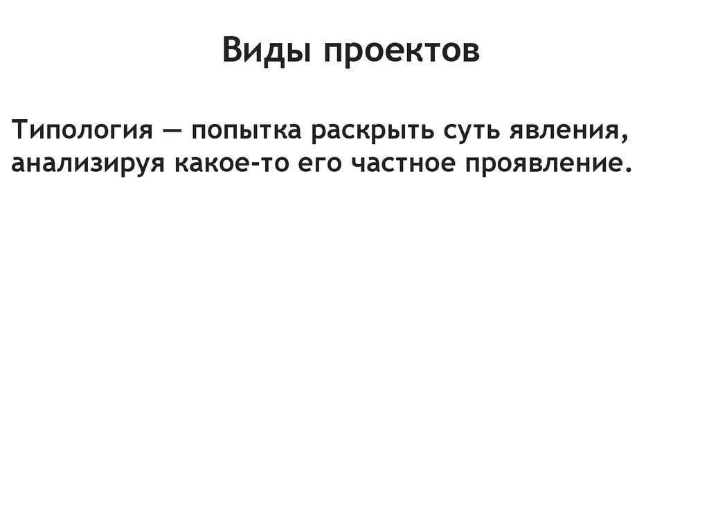 Виды проектовТипология — попытка раскрыть суть явления,