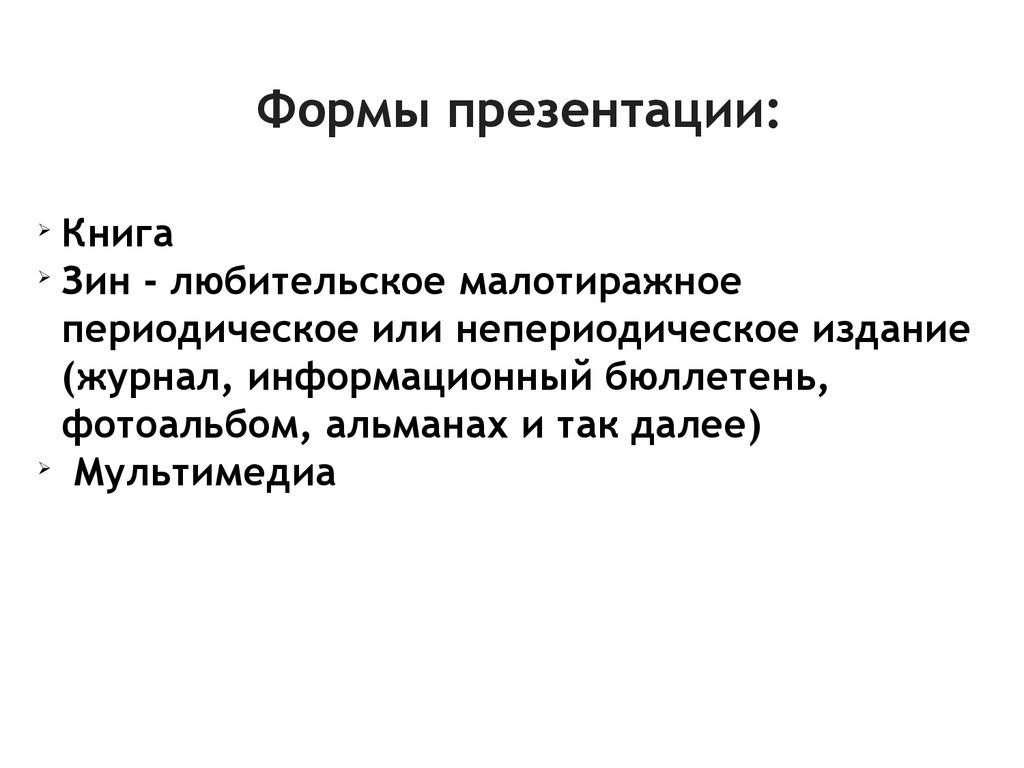Формы презентации:Книга