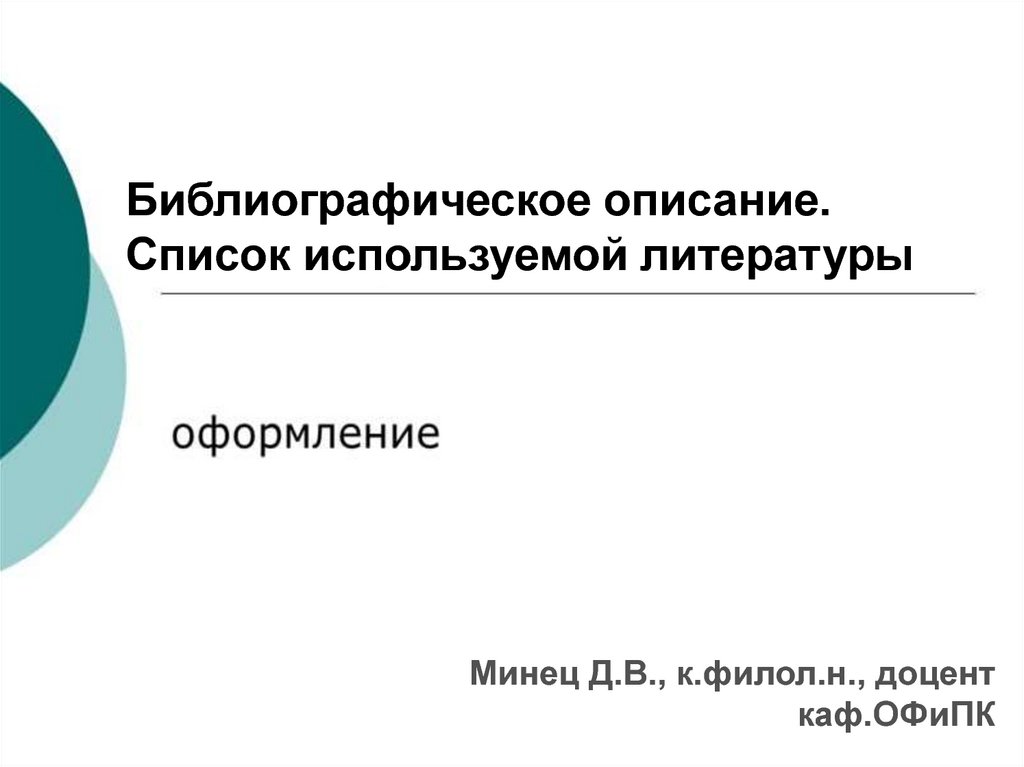 Библиографический список. Библиографическая ссылка. Общие требования и правила составления