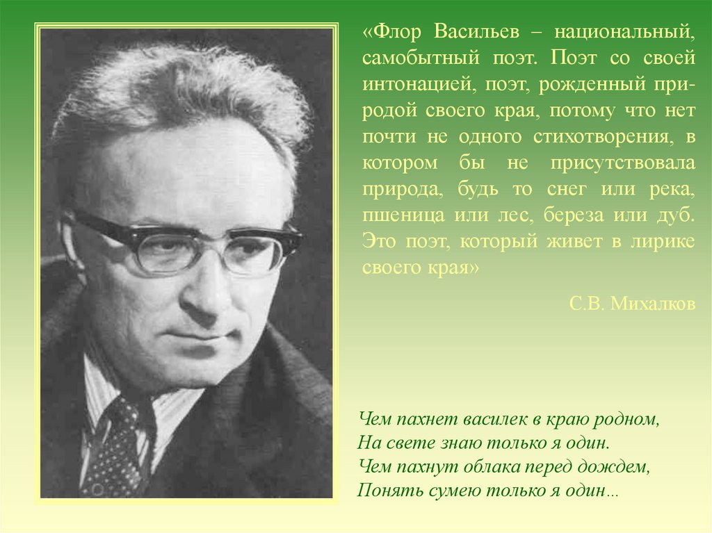 «Флор Васильев – национальный,самобытный поэт. Поэт со своей