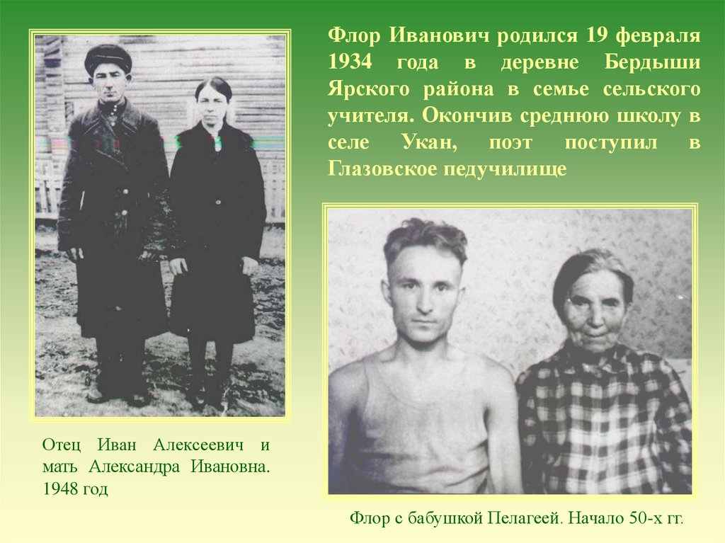 Флор Иванович родился 19 февраля1934 года в деревне Бердыши