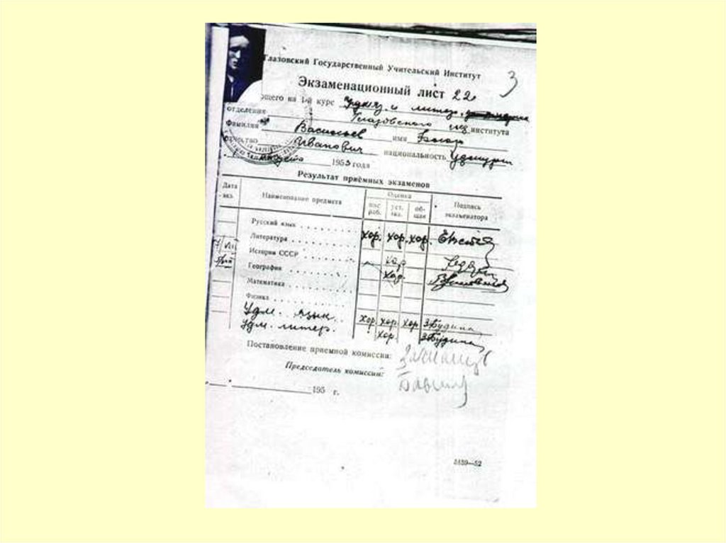 Васильев поступил в Глазовский педагогический институт им. В.Г. Короленко