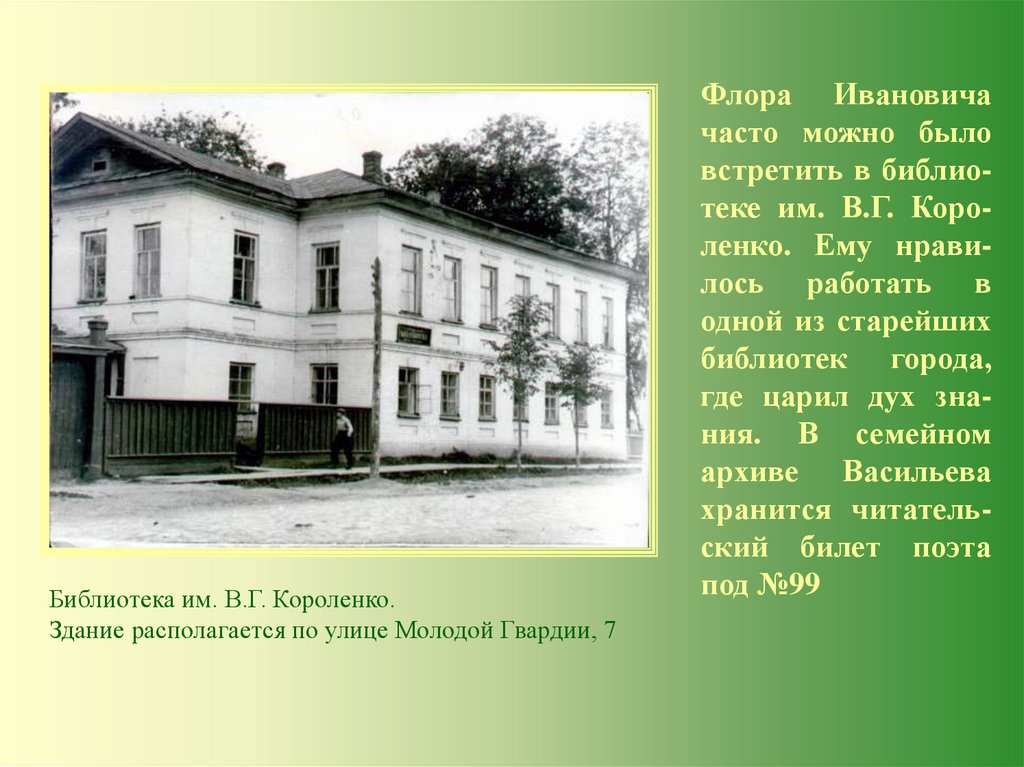 встретить в библиотеке им. В.Г. Короленко. Ему нравилось работать в