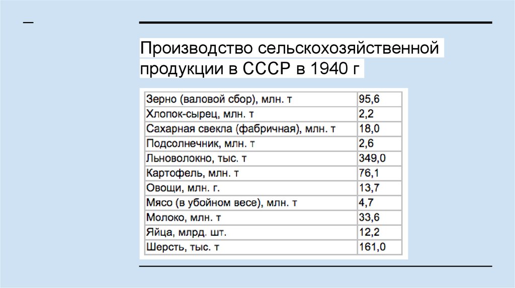 Производство сельскохозяйственнойпродукции в СССР в 1940 г