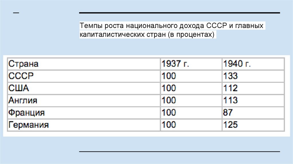 Темпы роста национального дохода СССР и главныхкапиталистических стран (в процентах)