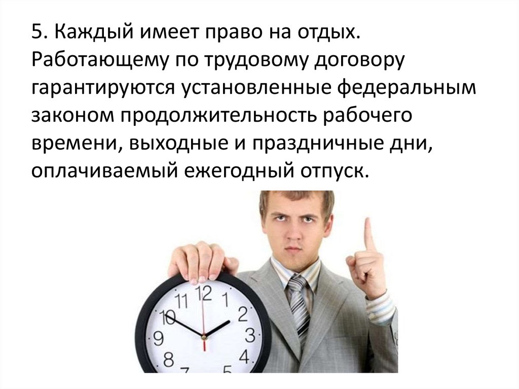 5. Каждый имеет право на отдых.Работающему по трудовому договору