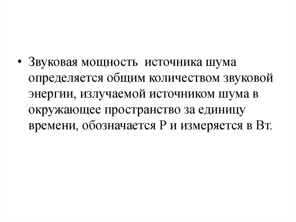 • Звуковая мощность источника шумаопределяется общим количеством звуковой