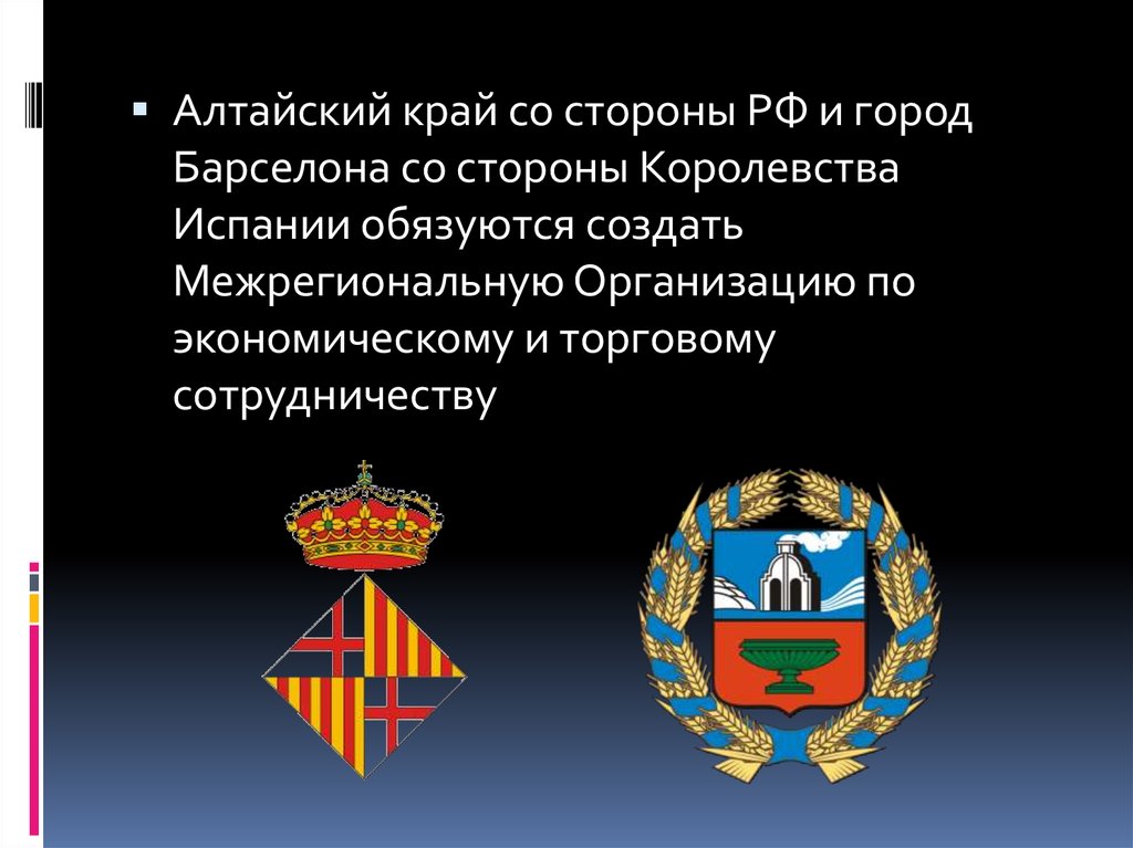 Соглашение о межрегиональном сотрудничестве в области экономики и торговли между Алтайским краем и городом Барселона