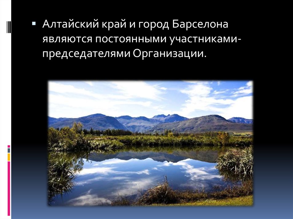 Алтайский край и город Барселонаявляются постоянными участникамипредседателями Организации.
