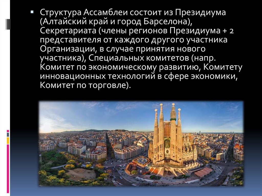 Структура Ассамблеи состоит из Президиума(Алтайский край и город Барселона),