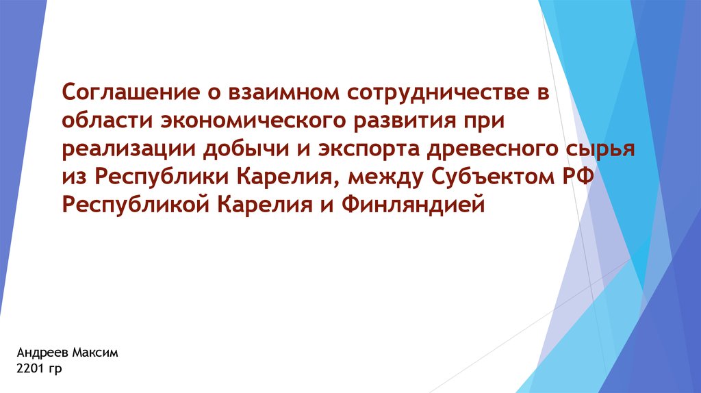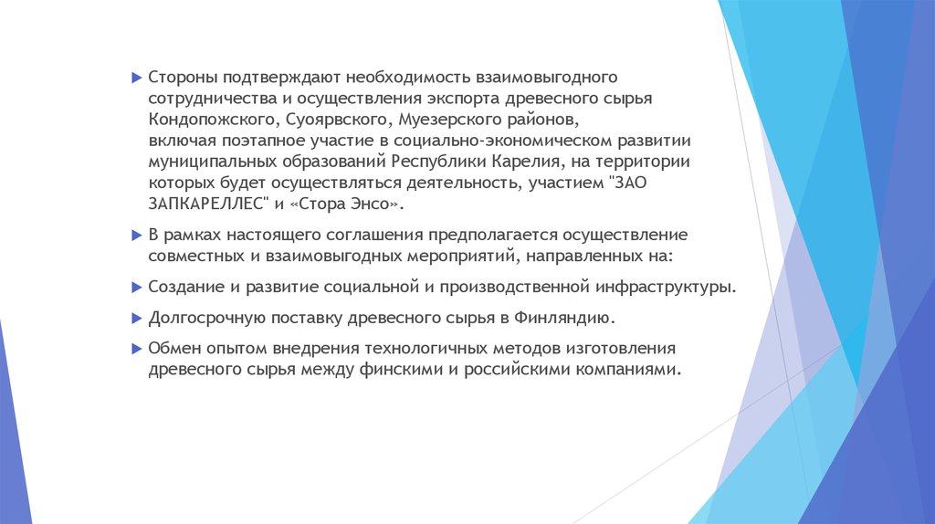 Соглашение о сотрудничестве в области экономического развития при реализации добычи древесного сырья из Республики Карелия