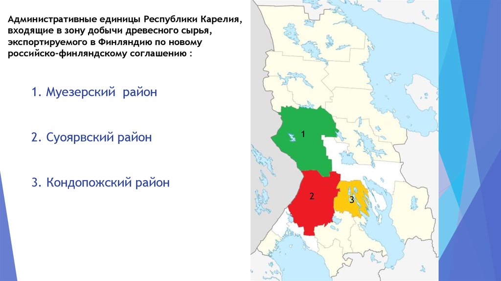 Административные единицы Республики Карелия,входящие в зону добычи древесного сырья,