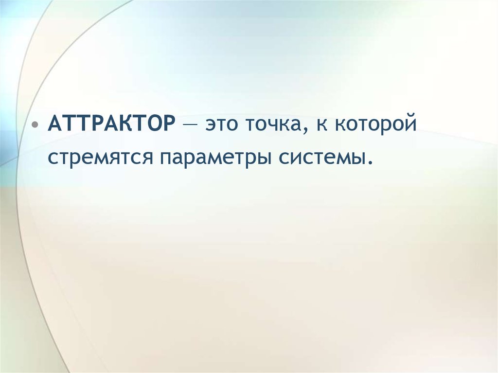 • АТТРАКТОР — это точка, к которойстремятся параметры системы.