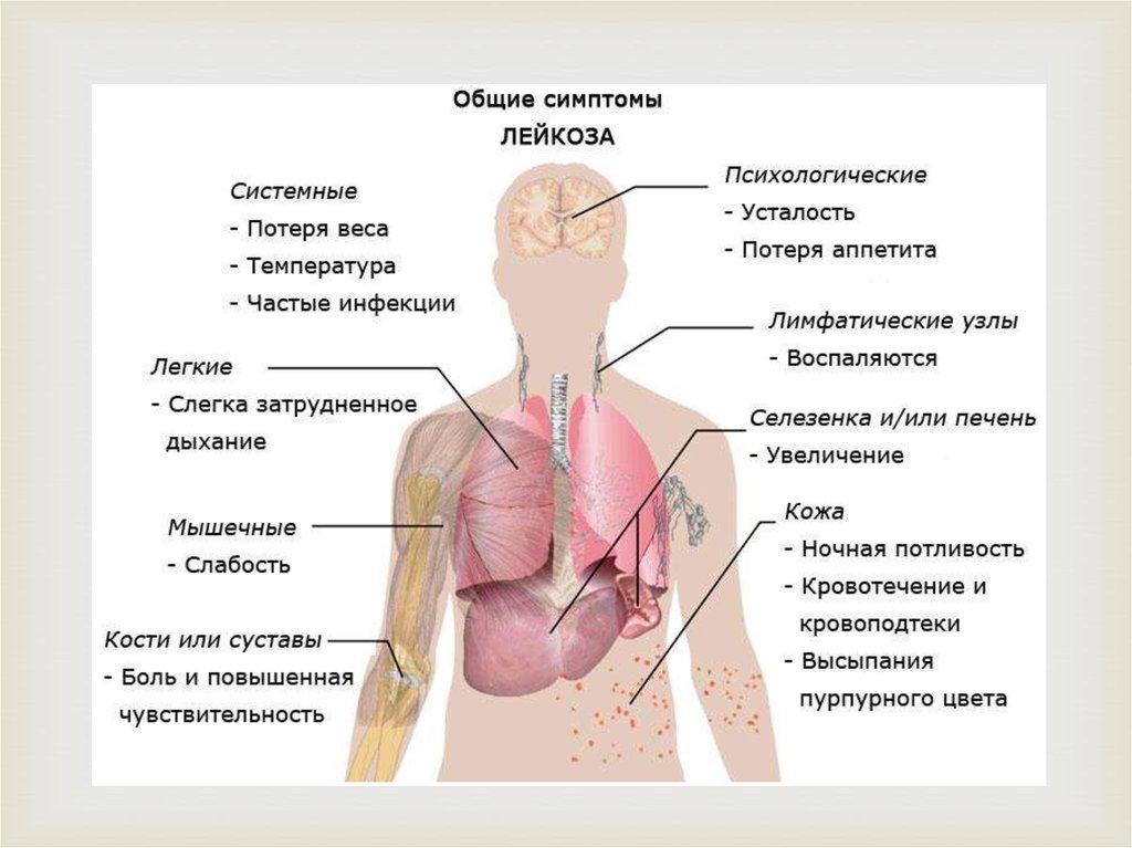 утомляемостью, потерей веса, анемией, кровоточивостью,