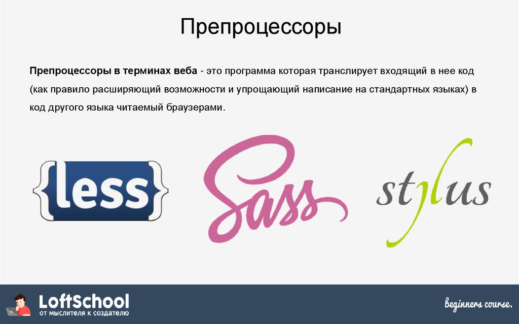 ПрепроцессорыПрепроцессоры в терминах веба - это программа которая транслирует входящий в нее код