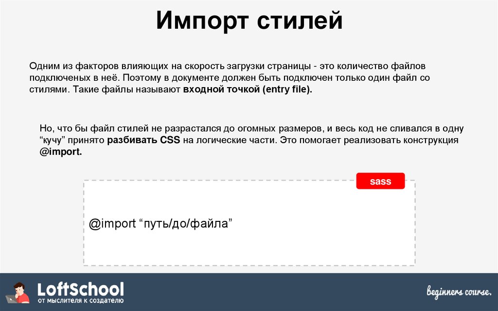 Импорт стилейОдним из факторов влияющих на скорость загрузки страницы - это количество файлов