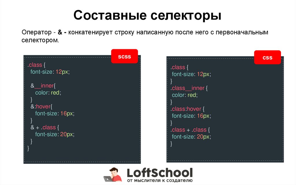 Составные селекторыОператор - & - конкатенирует строку написанную после него с первоначальным
