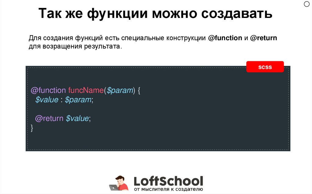 Так же функции можно создаватьДля создания функций есть специальные конструкции @function и @return