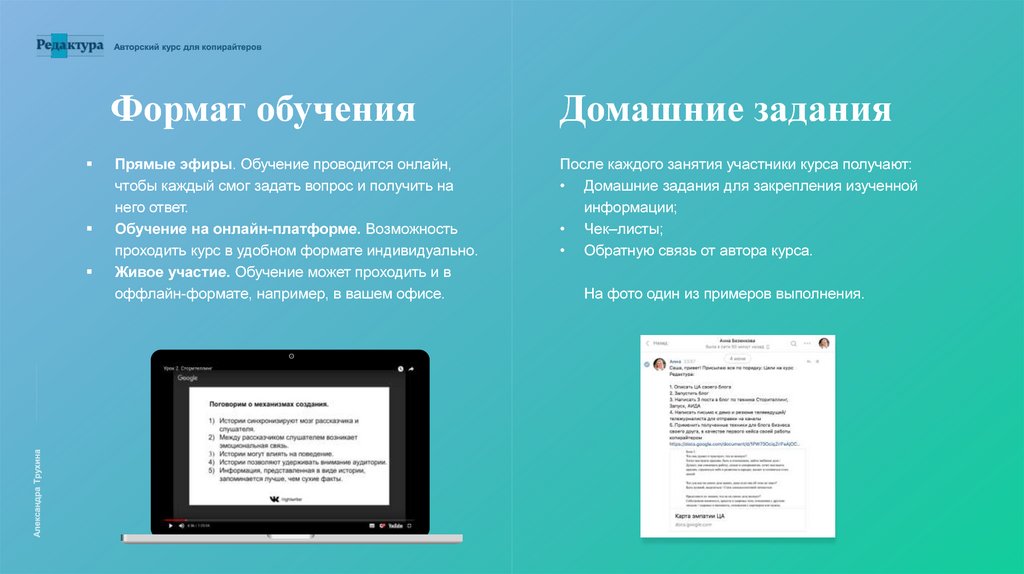 Формат обученияПрямые эфиры. Обучение проводится онлайн,