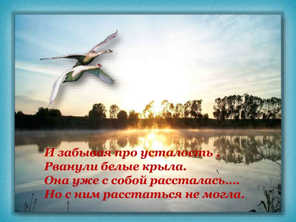 И забывая про усталость ,Рванули белые крыла.