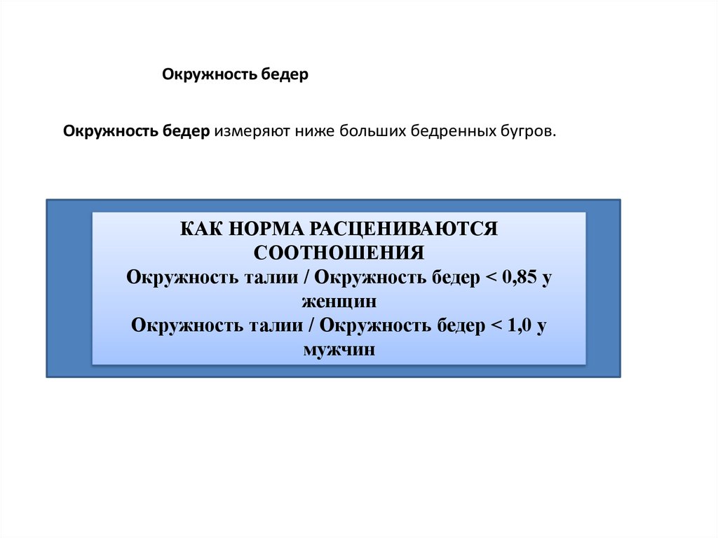 Окружность бедерОкружность бедер измеряют ниже больших бедренных бугров.