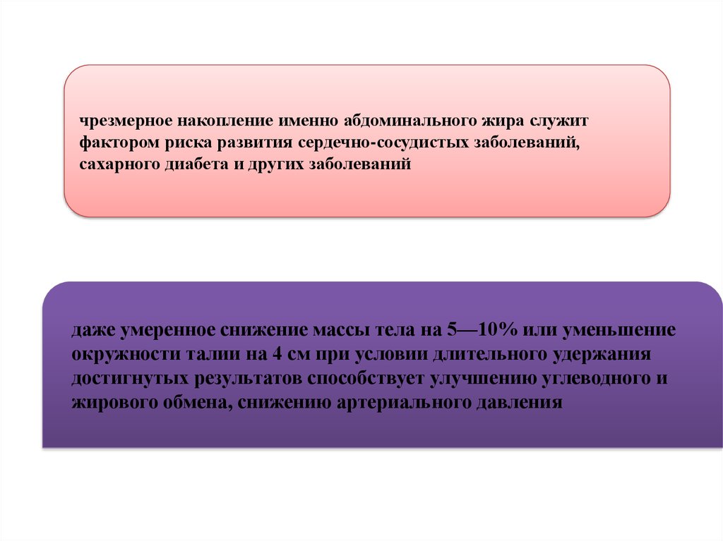 чрезмерное накопление именно абдоминального жира служитфактором риска развития сердечно-сосудистых заболеваний,