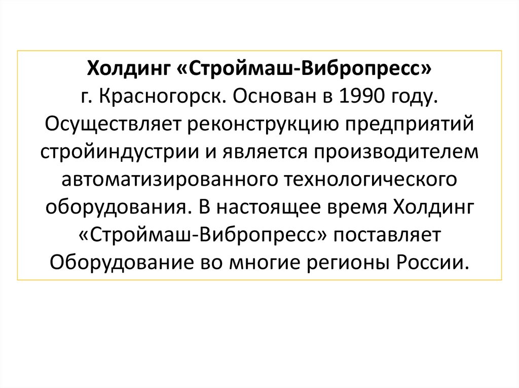 Холдинг «Строймаш-Вибропресс»г. Красногорск. Основан в 1990 году.