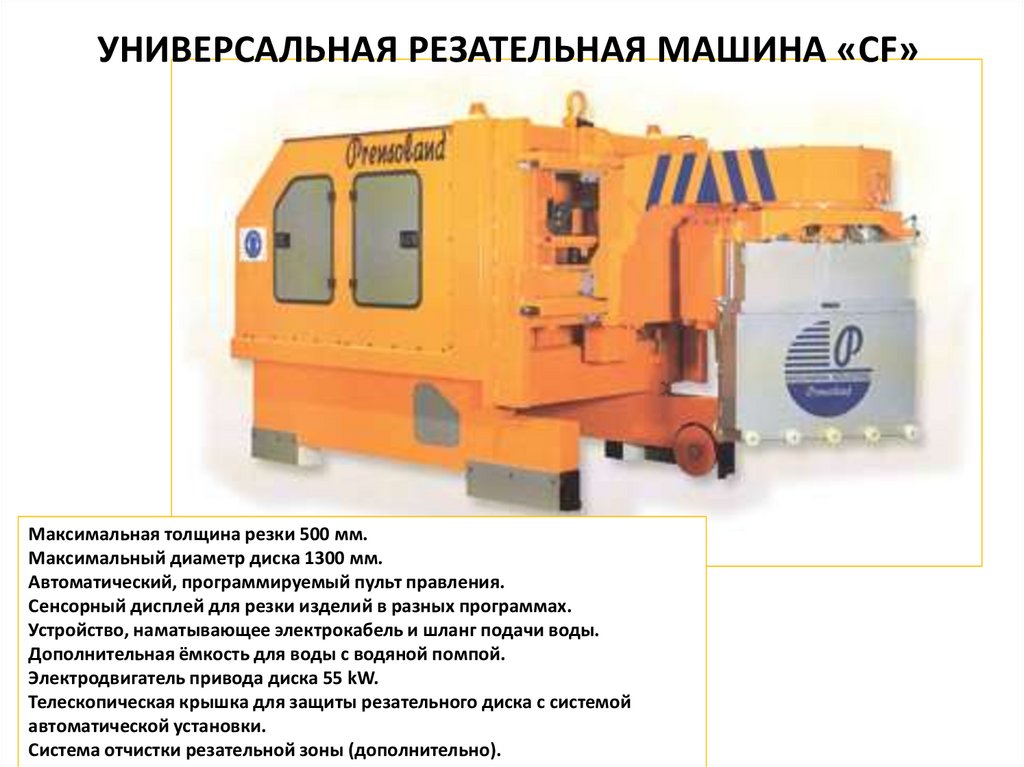 УНИВЕРСАЛЬНАЯ РЕЗАТЕЛЬНАЯ МАШИНА «CF»Максимальная толщина резки 500 мм.