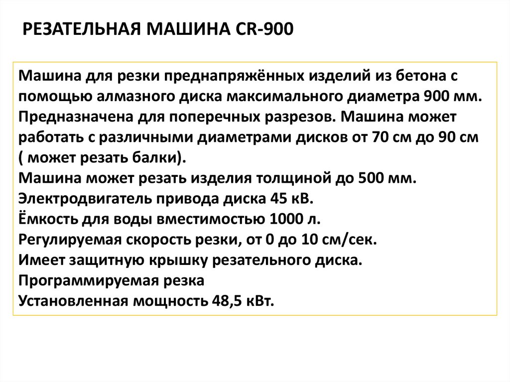 РЕЗАТЕЛЬНАЯ МАШИНА CR-900Машина для резки преднапряжённых изделий из бетона с