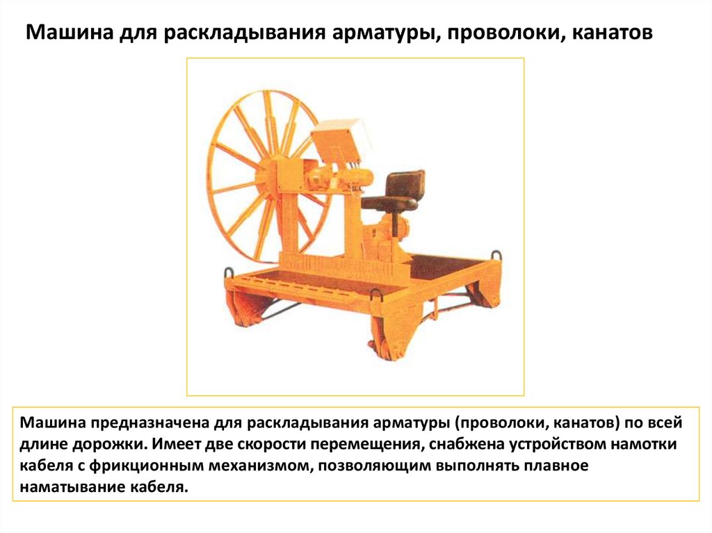 Машина для раскладывания арматуры, проволоки, канатовМашина предназначена для раскладывания арматуры (проволоки, канатов) по всей