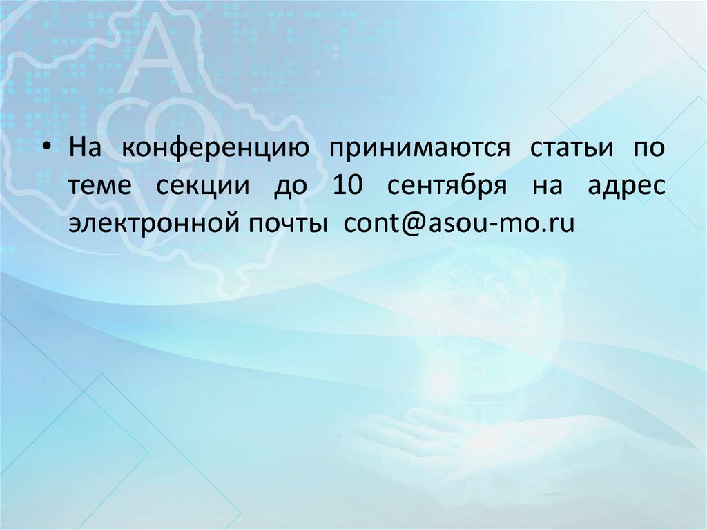• На конференцию принимаются статьи потеме секции до 10 сентября на адрес