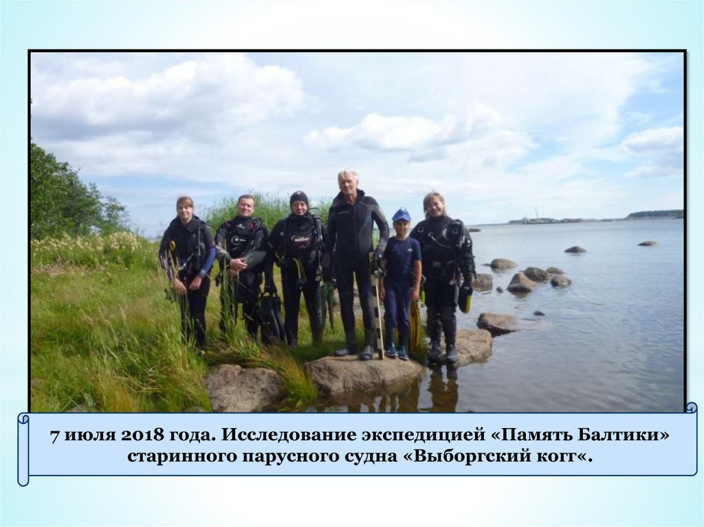 7 июля 2018 года. Исследование экспедицией «Память Балтики»старинного парусного судна «Выборгский когг«.