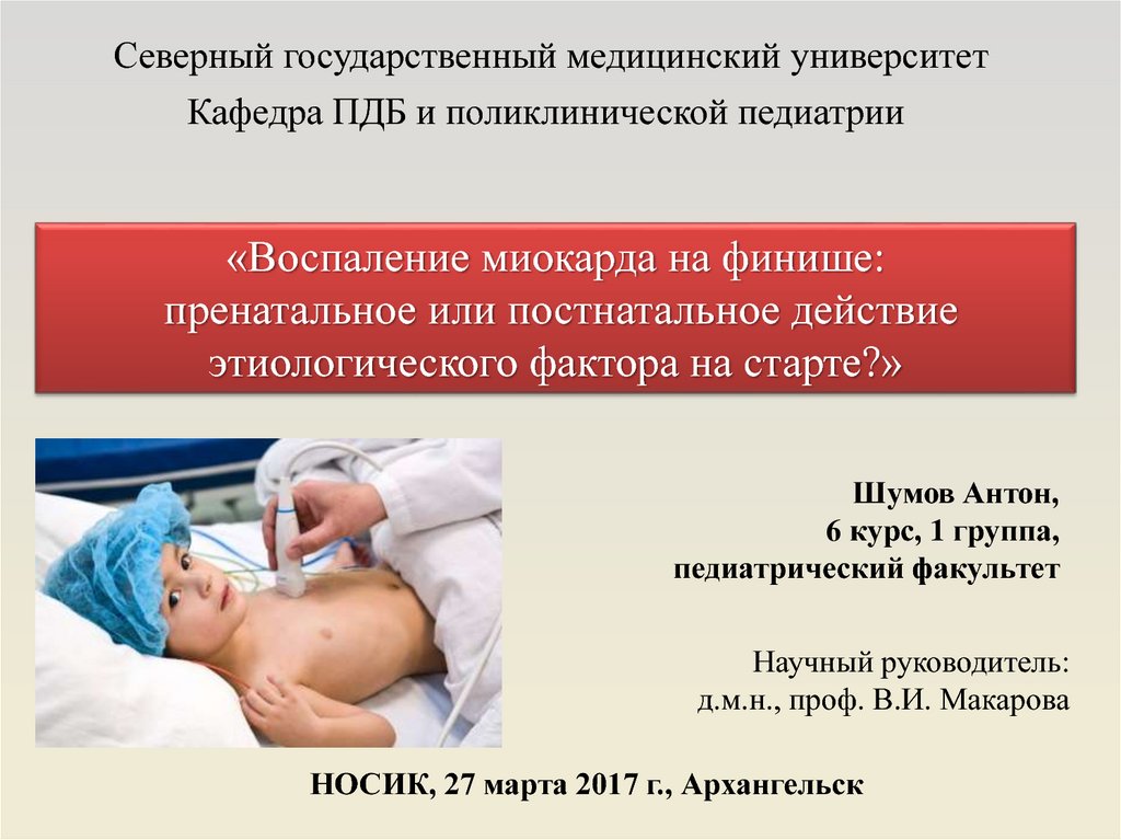 Северный государственный медицинский университетКафедра ПДБ и поликлинической педиатрии