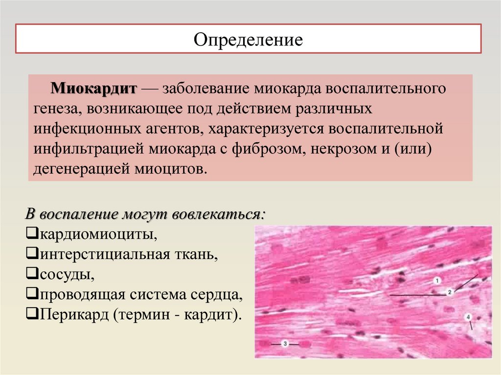 ОпределениеМиокардит — заболевание миокарда воспалительного