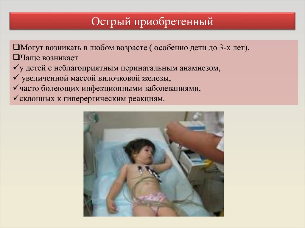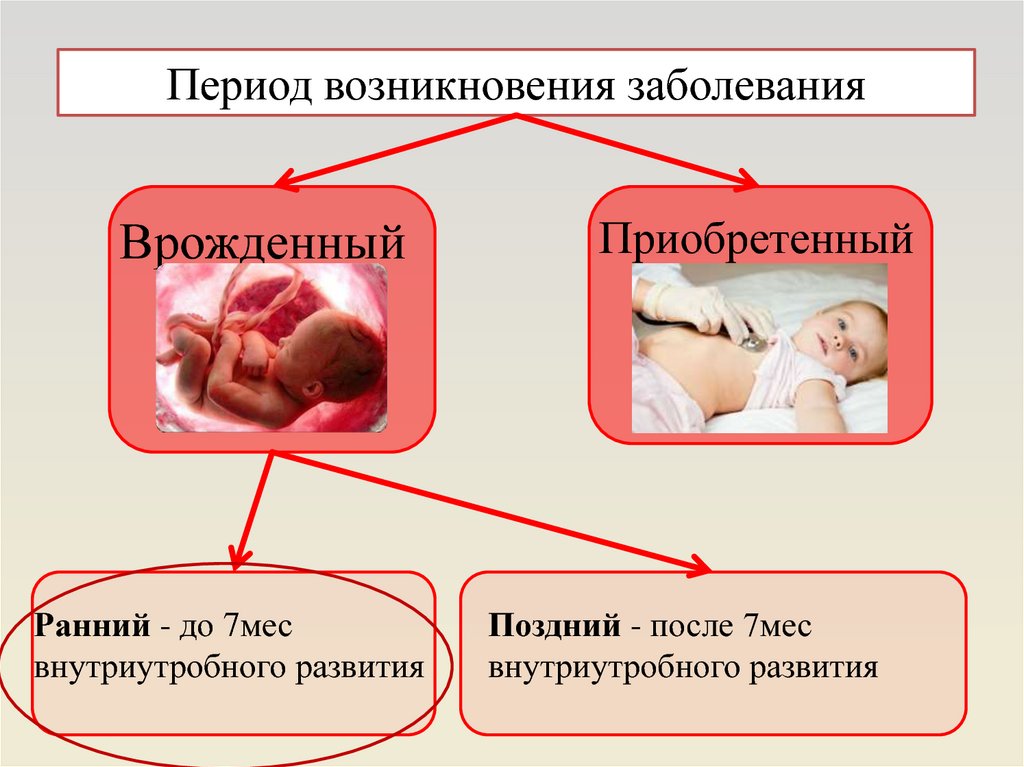 Врожденный («ранний», «поздний»), приобретенный