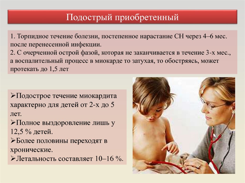 возрасте миокардит диагностируется в 2-42% случаев.